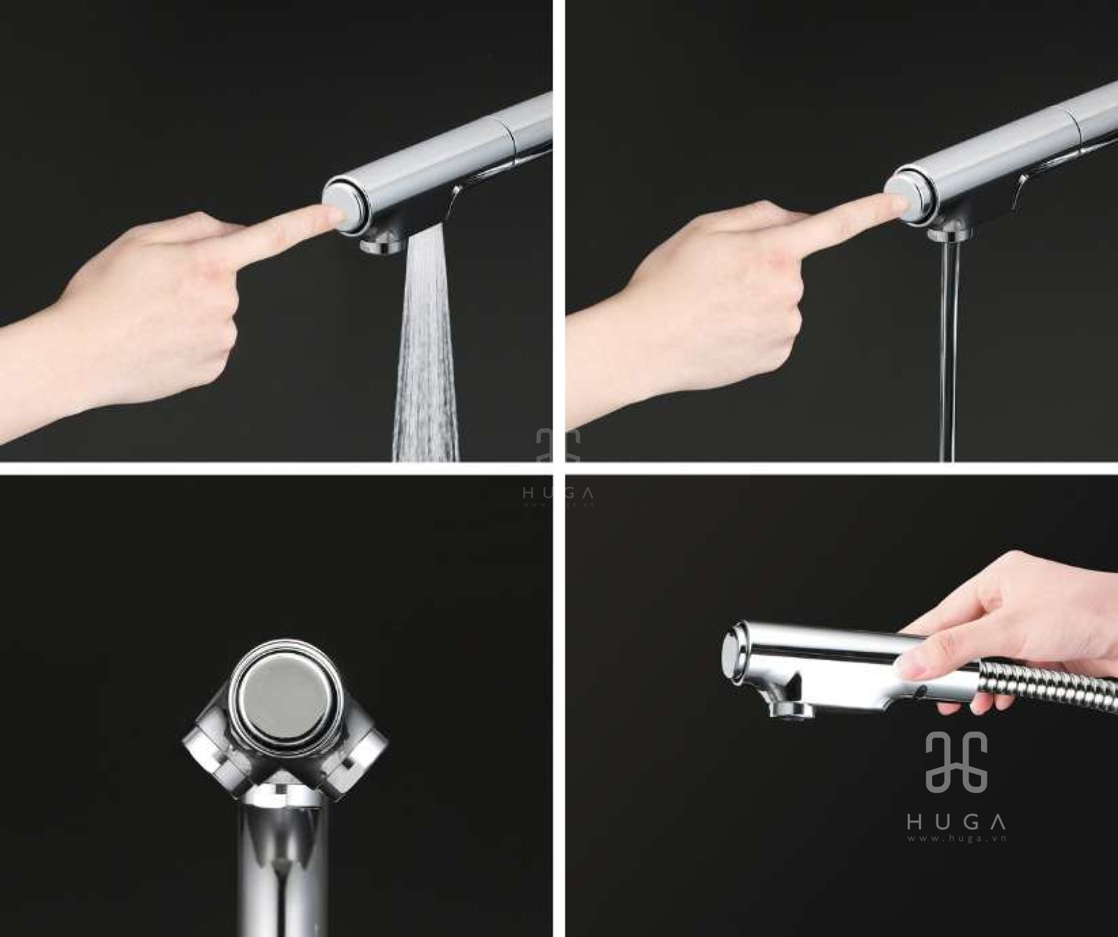 - Chỉ cần nhấn nút là có thể dễ dàng chuyển đổi giữa hai chế độ xả nước hoa sen và xả nước.
