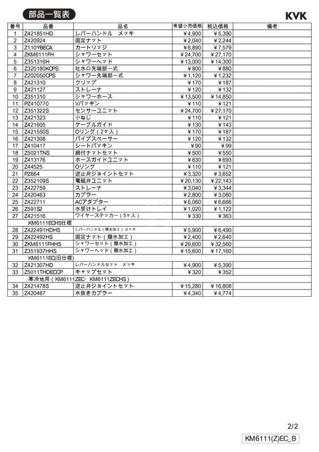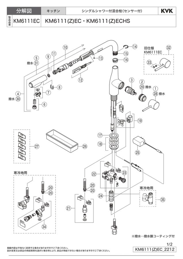 Bản vẽ tạo cấu hình và danh mục linh kiện thay thế vòi rửa KM6111EC: