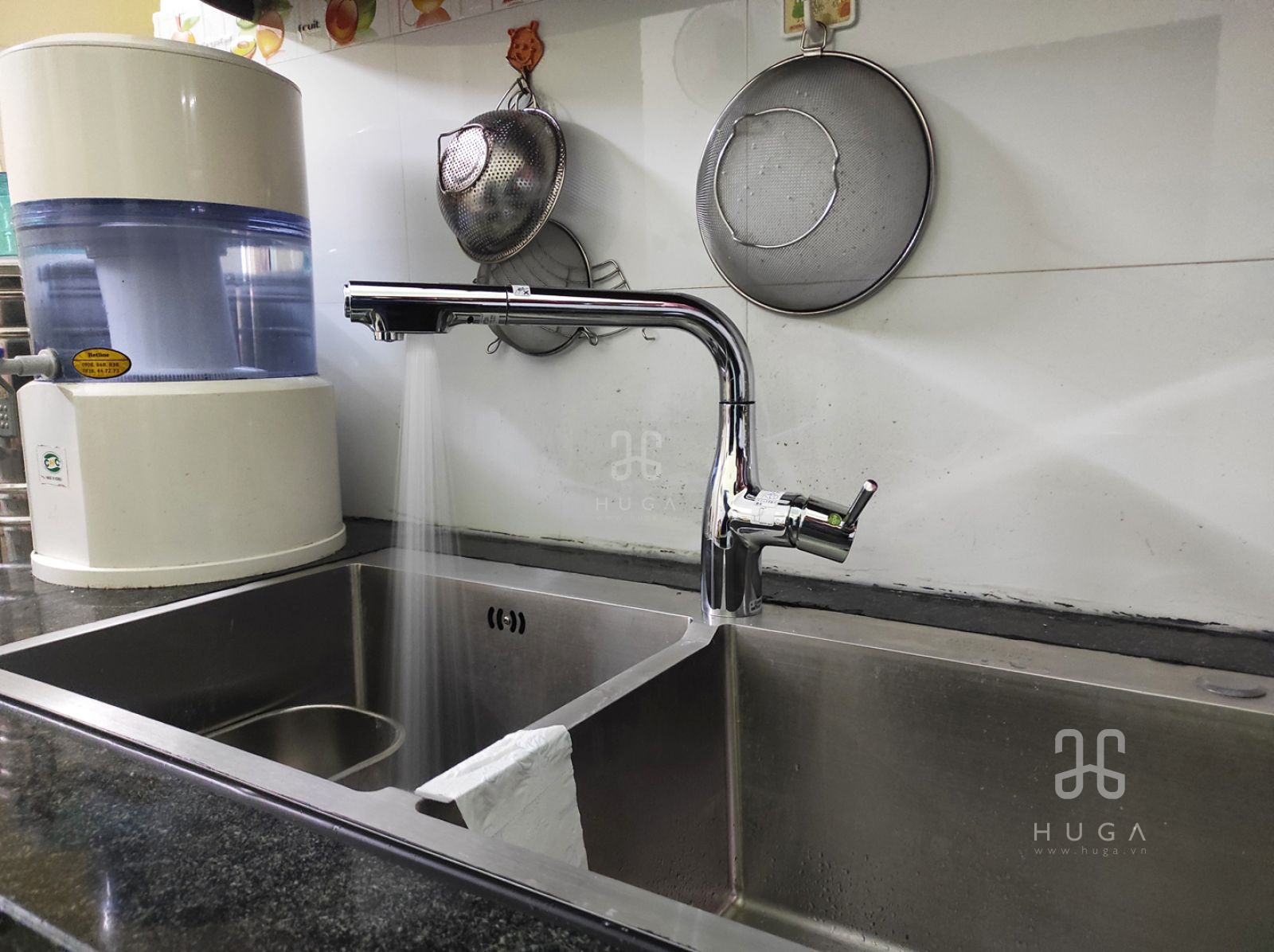 - Không gian dưới vòi rộng giúp dễ dàng rửa nồi và chảo lớn, thao tác thuận tiện.