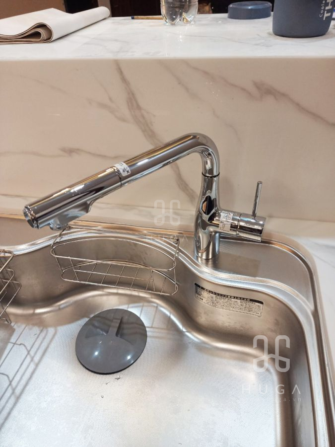 - Vòi rửa nóng lạnh và đầu vòi có rút dây